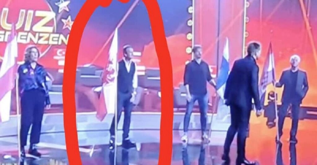 Eine unmissverständliche Steigerung erfährt die Präsentation der Kandidaten in jenem Moment, als sie mit ihrer Landesfahne vor das Publikum treten.