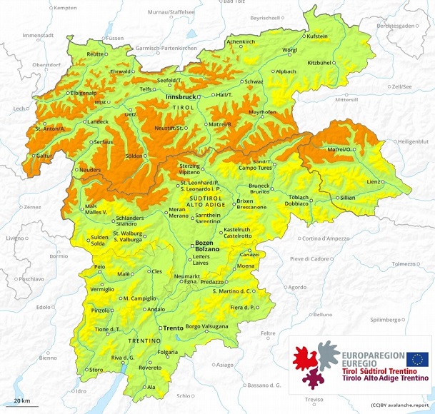 Lawinenkarte der "Europaregion, Tirol, Südtirol, Trentino, Tirol, Alto Adige, Trentino
