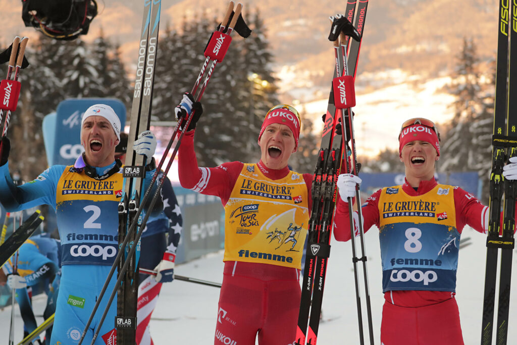 Primo sul traguardo si presenta, trionfatore di giornata, il gioioso Denis Spitsov, poco dietro di lui un rimontante, indomabile, incontrastabile Alexander Bolshunov, mai in difficoltà nel corso di questo Tour de Ski e vincitore per il secondo anno consecutivo del trofeo di cristallo. Terzo un combattivo e audace Maurice Manificat che ha tentato in tutti i modi di contrastare l’esercito russo, salvo poi alzare bandiera bianca per manifesta superiorità dell’avversario.
