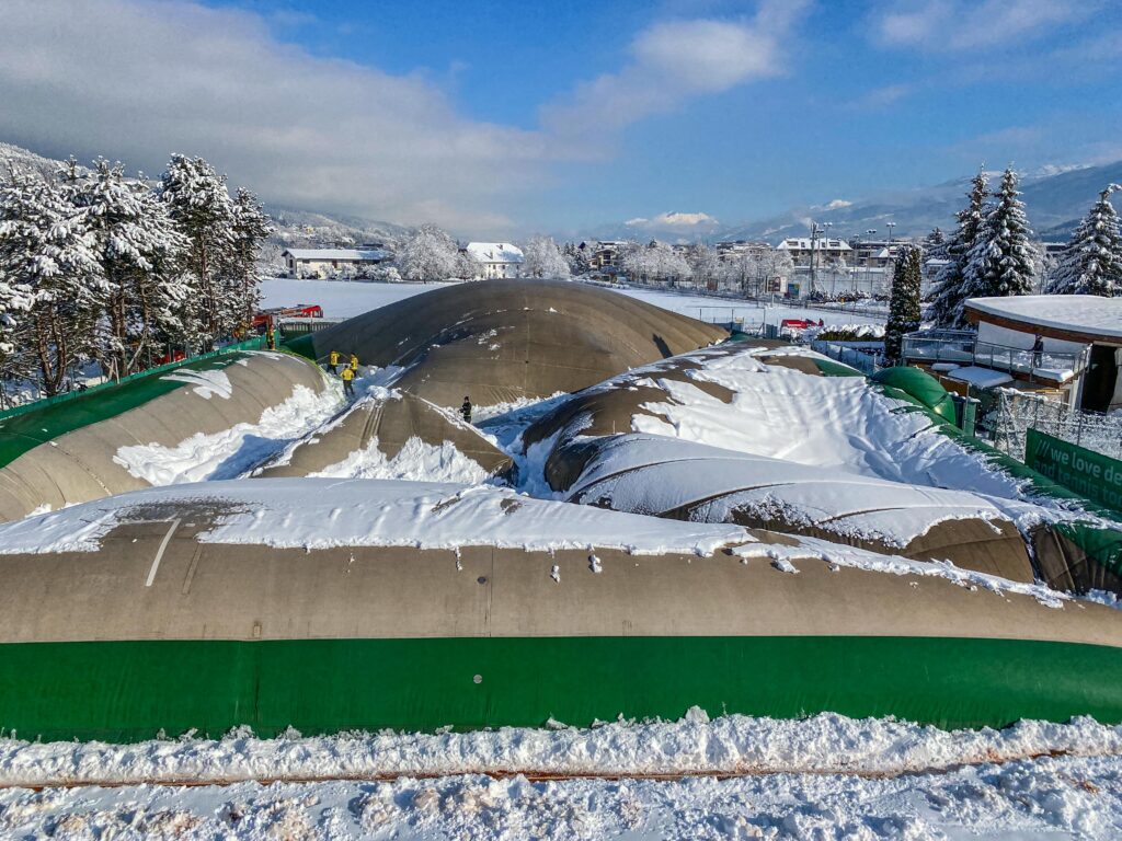 Unweit des Innsbrucker Flughafens kam es am Freitag zu einem Einsturz. Eine Traglufthalle am Fürstenweg ist unter der Schneelast eingesackt und zusammengebrochen.