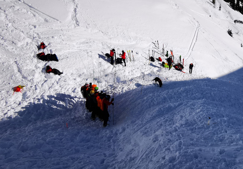 Ob noch weitere Personen verschüttet wurden, war zunächst unklar. Bergrettung und Lawinensucher durchkämmten bis 14.30 Uhr den Lawinenkegel. Die Suche wurde daraufhin abgebrochen.