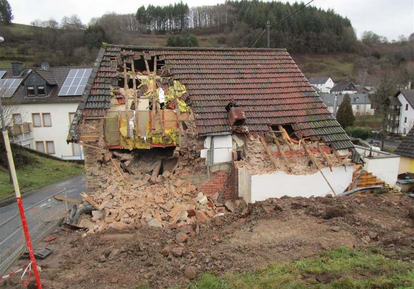 Ein Mann hat in Gerolstein sein eigenes Haus teilweise mit einem Bagger abgerissen. - Foto: Polizeipräsidium Trier