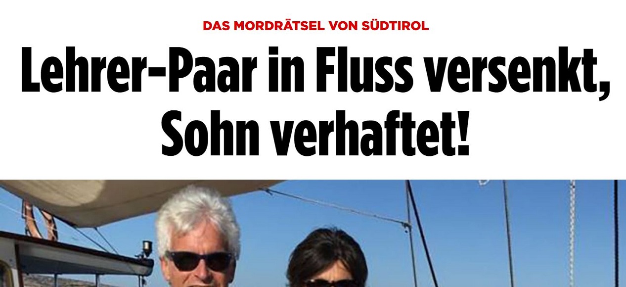 Bereits die Headline des Beitrages klärt den Fall vermeintlich auf: „Lehrer-Paar in Fluss versenkt, Sohn verhaftet“ wird dem BILD-Leser serviert.