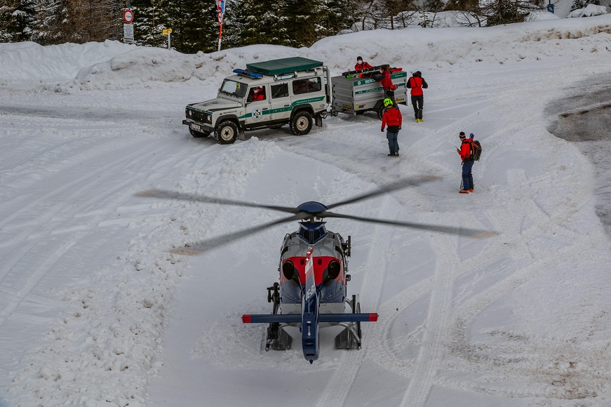 Neben dem Notarzt und der Besatzung des Polizeihubschraubers stehen ein Lawinenhundeführer und zwei Einsatzkräfte der Bergrettung Axams im Einsatz.