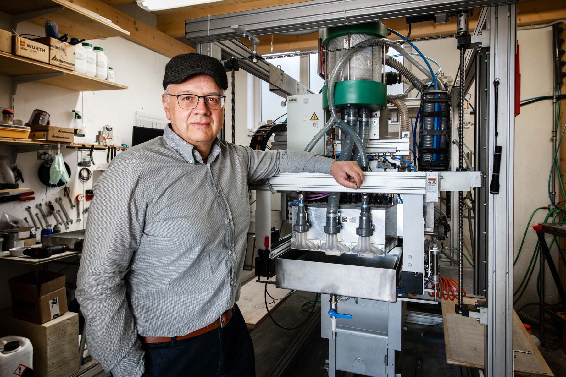In Zusammenarbeit mit dem Brixner Betonspezialisten Progress AG entstand ein erster Druckkopf für Sorelzement. Da dieses Material weit weniger Anwendungsmöglichkeiten als Beton bietet, forschte Wohlgemuth weiter – und patentierte 2021 schließlich den weltweit ersten 3D-Beton-Inkjet-Druckkopf.