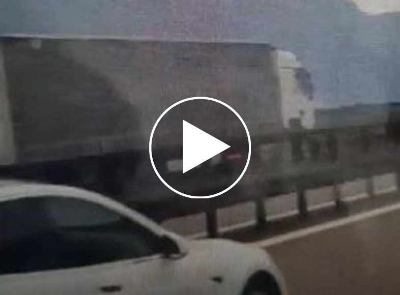 Das Video dauert wenige Sekunden – hat es aber in sich. Der Sattelschlepper ist einige Kilometer auf diese Weise gefahren.