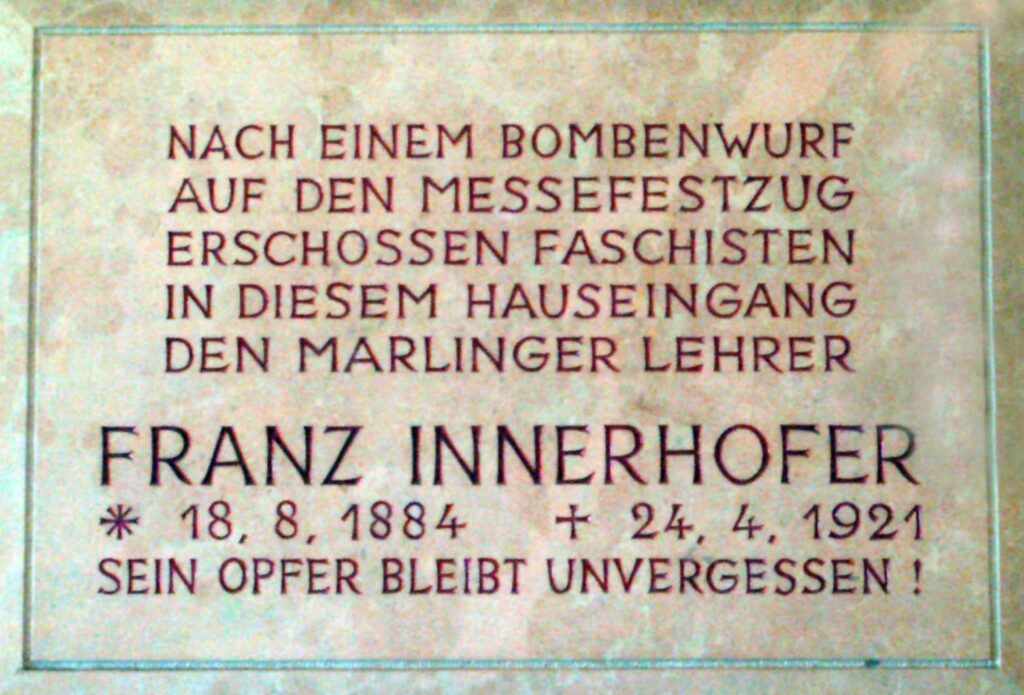 Am 26. April 1931, dem zehnten Jahrestag der Ermordung Innerhofers, fand am Rennweg in Innsbruck die Enthüllung einer von dem „Andreas Hofer-Bund – Tirol“ gestifteten Gedenktafel statt.