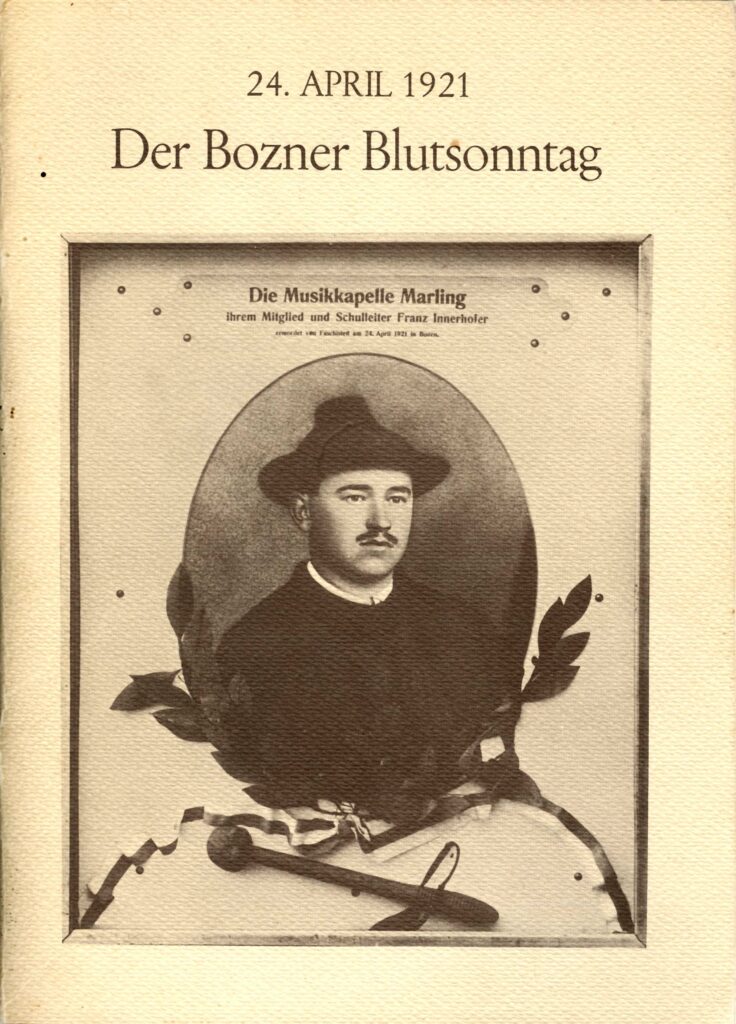 Im Jahr 1981 veröffentliche der Südtiroler Landesbeamte, Heimatpfleger, Publizist und Historiker Dr. Norbert Mumelter aus Anlass der 60. Wiederkehr des Todestages Innerhofers die Gedenkschrift „24. April 1921 – DER BOZNER BLUTSONNTAG und sein Todesopfer Franz Innerhofer“.