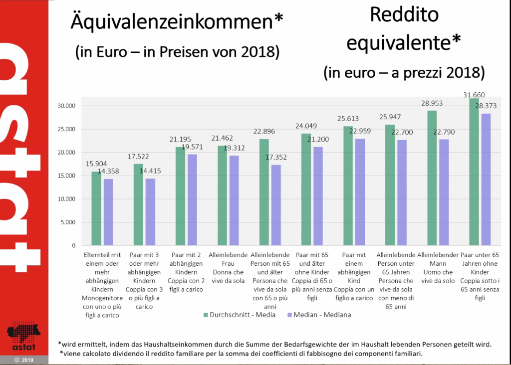 Die Armutswahrscheinlichkeit steige vor allem bei alleinlebenden Senioren, Alleinerziehenden, Großfamilien, Nicht-EU-Bürgern, Arbeitslosen oder gering Beschäftigten. Für jede fünfte Familie in Südtirol sei Armut im weiteren Sinn Realität. Auffällig sei hierbei, dass die Armutswahrscheinlichkeit bei Alleinerziehenden und Frauen letzthin deutlich gestiegen ist: „Es ist eine Tatsache, dass Männer in den meisten Sektoren deutlich mehr verdienen als Frauen“, betont Marta De Philippis.