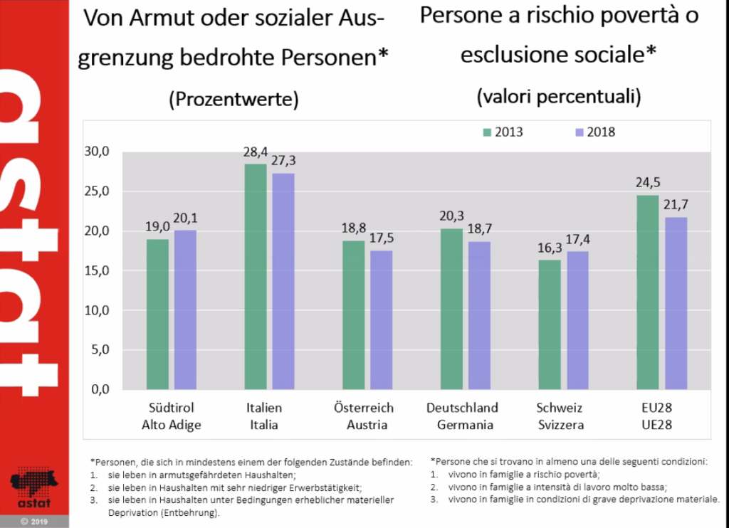 Die relative Armut in Südtirol sei in den letzten 15 Jahren nicht wirklich angestiegen, stellte Luca Frigo fest. Jedoch habe sich das „Armutsrisiko“ erhöht: Ohne die finanziellen Hilfen wäre die Situation in Südtirol „deutlich schlimmer“, meint Frigo.
