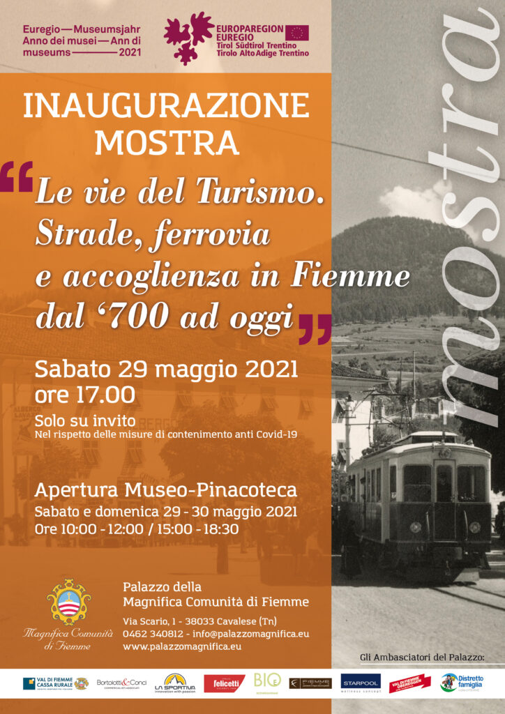 Giovedì 27 maggio, dalle 11.30 alle 12.15 sarà possibile seguire – in diretta streaming da Innsbruck sulle pagine web DELL’EUREGIO TIROLO e su quella dedicata a tutte le iniziative dell‘ ANNO DEI MUSEI DELL’EUREGIO – la cerimonia di inaugurazione dell’Anno dei Musei dell’Euregio 2021, alla presenza di Platter, Kompatscher e Fugatti, mentre venerdì 28 ci sarà la conferenza stampa di presentazione della mostra diffusa presso il Museo della Guerra di Rovereto. Infine, sabato 29 alle 17:00 presso il Palazzo della Magnifica Comunità di Fiemme, ci sarà la cerimonia di inaugurazione dell’esposizione Le Vie del Turismo.