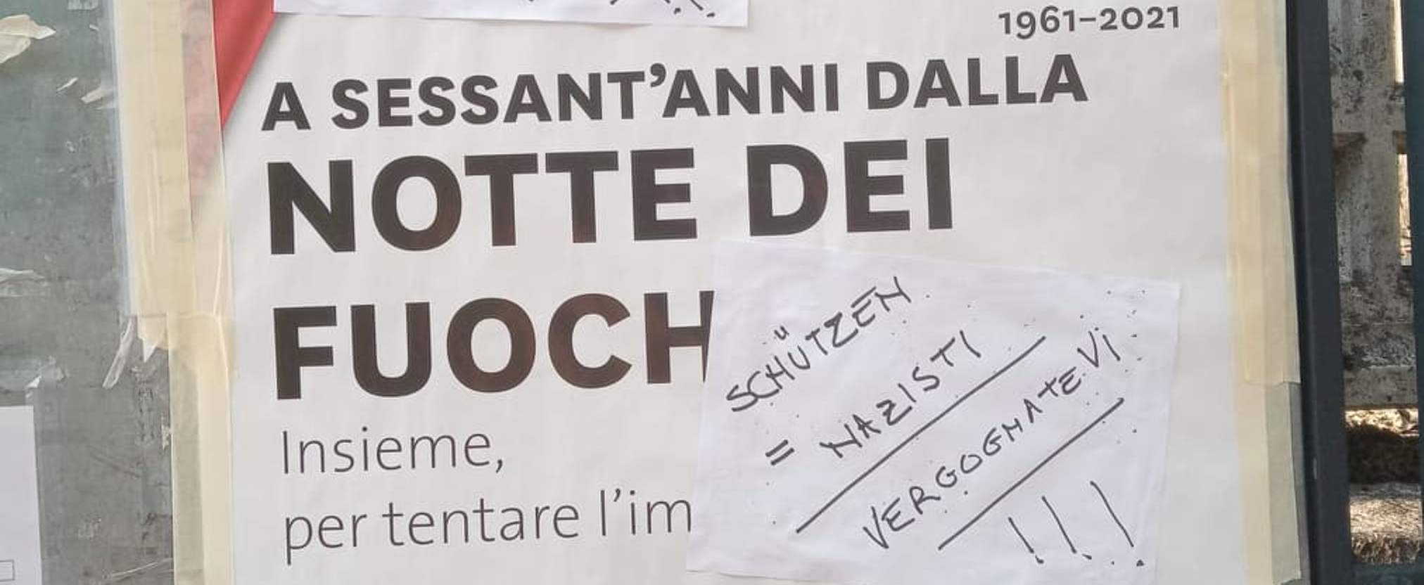 Sessant’anni dalla Feuernacht, la Notte dei Fuochi. I manifesti che ricordano uno dei momenti più drammatici e dirompenti della storia più recente della nostra terra sono stati realizzati a cura del Südtiroler Heimatbund in collaborazione con le Federazioni Schützen di Bolzano e di Trento, e quindi esposti in tutto il territorio regionale (ecco il link all’articolo di UT24 con alcune immagini delle affissioni: RICORDANDO LA NOTTE DEI FUOCHI)