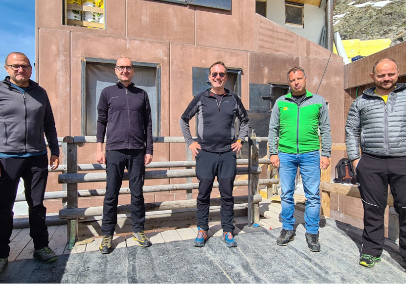 Die Arbeiten für den Wiederaufbau der neuen landeseigenen Stettiner Hütte werden von der temporären Bietergemeinschaft der Unternehmen „Graf & Söhne – HOLKA Genossenschaft“ abgewickelt, welche die europaweite Ausschreibung gewonnen hatte. „Die Unternehmen, die im Einsatz sind, stammen aus Moos in Passeier und arbeiten mit Überzeugung für den Wiederaufschwung in Südtirol“, ist Bessone überzeugt. Insgesamt investiert das Land 3,155 Millionen Euro in den Neubau der Schutzhütte und laut Bessone somit für das Land, den Tourismus und die Gesellschaft insgesamt.