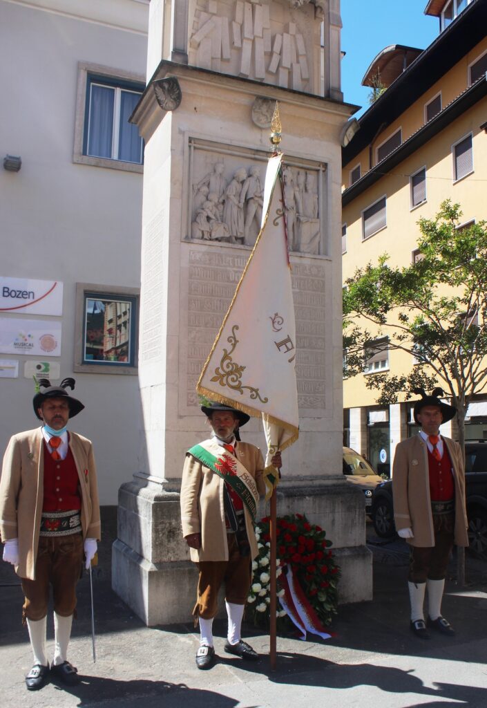Mit einer Messe im Bozner Dom und einer Kranz-Niederlegung am Peter-Mayr-Denkmal erinnerten am Sonntag Vormittag der Südtiroler Heimatbund und Schützenabordnungen aus dem ganzen Land, die Kompanien Bozen und Gries sowie eine Schützenabordnung aus dem Fleimstal an den beim Messeumzug 1921 schwer verletzten und dann verstorbenen Giovanni Battista Daprà.