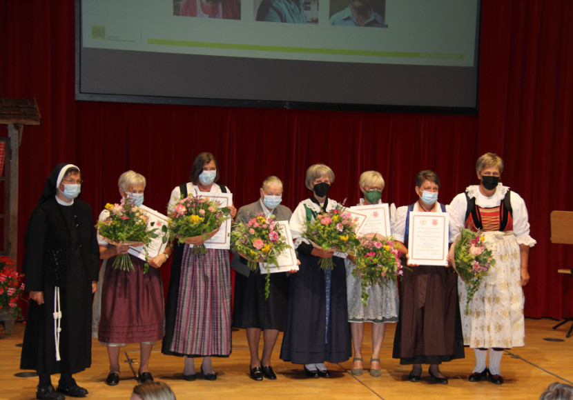 Die Stiftung Südtiroler Sparkasse ehrte wieder sechs Witwen. „Heldinnen tragen nicht immer große Namen, sondern sind meist mitten unter uns“, so Landesbäuerin Antonia Egger, die die Ehrung gemeinsam mit Sr. Mirjam Volgger im Auftrag der Stiftung Südtiroler Sparkasse vornahm. „Jede Witwe hat ihre eigene Geschichte, doch eines eint sie alle: Der Glaube an Gott, der Glaube an sich selbst und die Demut, Hilfe annehmen zu können und das zeigt ihre hohe soziale Kompetenz“, so Sr. Volgger. Der Preis der Stiftung ging an Monika Klara Telser Wwe. Tröger (Oberfrinig, Tanas in Laas), Herta Pixner Wwe. Pircher (Hochforch, Naturns), Marta Grünfelder Wwe. Kier (Grünfelderhof, Lüsen), Theresia Rabanser Wwe. Schmalzl (Unterzerun, Lajen), Maria Christina Ploner Wwe. Tschurtschenthaler (Prünster, Sexten), Rosa Gross Wwe. Hermeter (Moarhof, Wangen/Ritten).