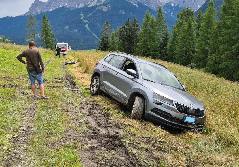 Gegen 15 Uhr rückte die Freiwillige Feuerwehr Sexten zu einem nicht alltäglichen Einsatz aus. Ein italienischer Tourist war mit seinem PKW am Mitterberg in Richtung Gasthof Waldruhe unterwegs und ist auf einem Wanderweg steckengeblieben.