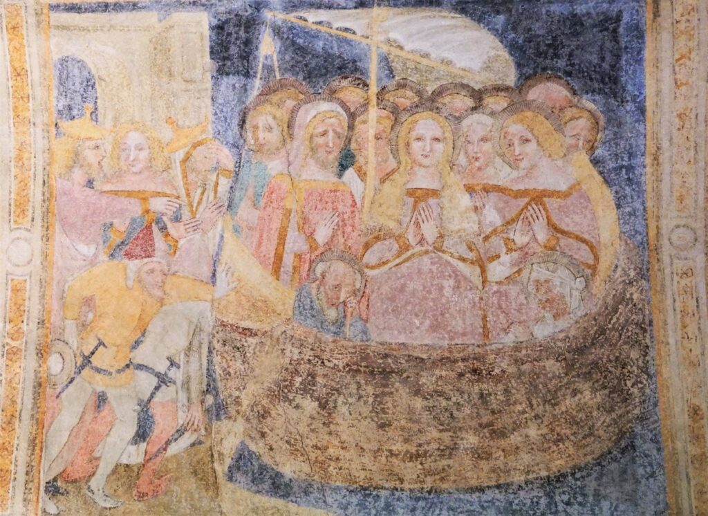 Ist ihre Überfahrt tatsächlich eine Erfindung? In der Kapelle von Sankt Magdalena findet sich ein Freskenzyklus über ihre Lebensgeschichte. Dessen Verfasser ist unbekannt, dürfte aber im oberitalienischen Raum Mitte des 14. Jahrhunderts seine Kunstfertigkeit erlernt haben. Das Kuriose daran: An einer Stelle an der Südwand zeigt ein Fresko, wie Maria Magdalena auf einem Schiff in einen Hafen einläuft. Ist die Legende also doch wahr? Und warum ist sie geflüchtet?