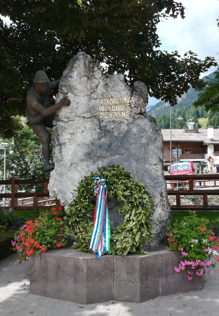 Aldidanché la festa de la Madona d’aost la rua tel maor temp de lurier e l’é stat dassen l risech che noscia jent desmentie l gran valor de chesta giornèda. Fosc per chesta rejon del 1974 Don Tito Vecchietti preve a Ciampedel, Luciano Ploner, Renzo Favé e Corrado Riz che i era menacrepes à pissà de endrezèr via, a Ciampedel, la festa di “omin da mont”. L’é stat n gran bel pensier! Da enlouta la vegn fata duc i egn. Vegn dit la messa a l’averta n onor de la Madona, vegn pojà na gherlanda de arbegola dedant al monument de la guides e recordà la storia de l’alpinism fascian. Endèna Messa vegn preà che Senta Maria Maor vèrde via con sie mantel e sia doucia veièda duc chi che va sa mont e a crepes, che sie per lurier o per spas. Vegn dit develpai al Creator per ne aer donà chesta maraveousa val che ne dèsc l met de aer lurier vejin a cèsa per tirèr su noscia families. Se recorda i valores che nesc veies ne à lascià, la fe, l tegnir dur, la legreza e soraldut l se didèr fora un co l’auter tel besegn. A jir sa mont se fèsc fadìa, i vièi i é erc ma canche se rua sun som i eies pel goder de vedudes maraveouses, l cher pel troèr pèsc e l’ènema pel se arvejinèr a chel Bel Die del Ciel. Coscita l’é ence te la vita, se fèsc fadìa a arjonjer n ensomech, vèlch outa se à besegn de zachei che ne deida a jir inant e canche zacan se rua a piz se proa na gran legreza.