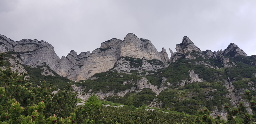 Il panorama è solo un assaggio di ciò che potrà godere una volta raggiunto il Bivacco Vigolana (1993 m.), un baita dallo stile unico, una reggia per chi conosce ben altri tipi di bivacchi. Si tratta di una struttura assai moderna, di nuova realizzazione, ben isolata e soprattutto pienamente inserita nel paesaggio. Il bivacco si erge su uno sperone roccioso a strapiombo sulla Valle, quasi una prosecuzione della grigia roccia su cui si staglia. Un esempio di architettura moderna, un’immagine dell’impronta dell’uomo sulla montagna, un’orma del passaggio dell’alpinista che non sfregia ma accarezza lodevolmente il luogo in cui esso è ospite.