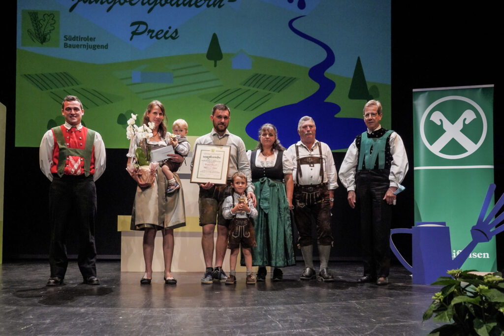 Herbert Von Leon, Obmann des Raiffeisenverbrands, überreicht der jungen Familie den mit 10.000 Euro dotierten Preis. Er erklärte: „Es ist beeindruckend zu sehen, unter welch schwierigen Bedingungen und doch mit wieviel Freude und Zuversicht junge Menschen ihren Hof bewirtschaften.“ Die ausgezeichnete Familie soll den Bäuerinnen und Bauern ein Vorbild sein und eine Möglichkeit aufzeigen, wie man Südtirols Bergbauernhöfe zukunftsorientiert und wirtschaftlich attraktiv bewirtschaften kann.