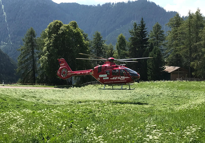 Im Einsatz stehen der Notarzthubschrauber des Aiut Alpin, die Feuerwehr und die Besatzung eines Rettungswagens.