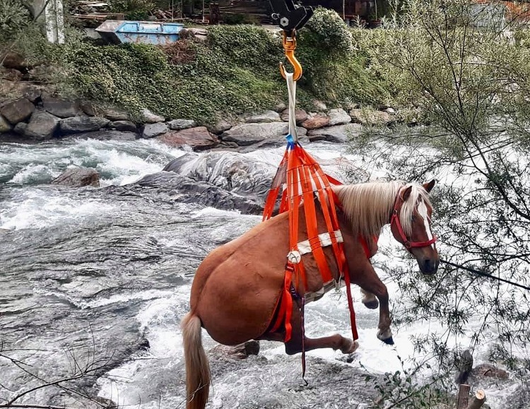 Pferd wird von der Feuerwehr aus der Passer geholt. (Bild: FF St. Leonhard Passeier)