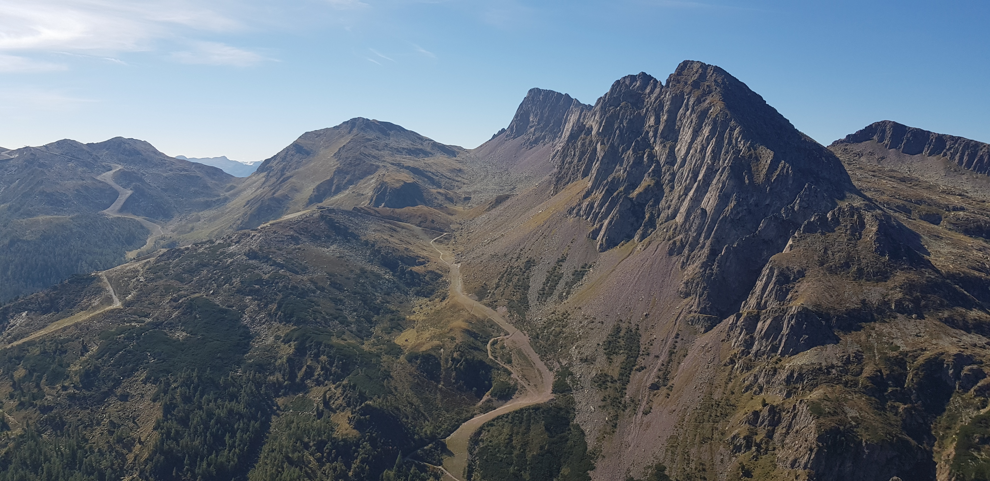 Un abbraccio tra il Lagorai, lunga e ampia catena montuosa tra la Valsugana e la Val di Fiemme, e le Pale di San Martino, il gruppo più esteso delle Dolomiti: questo è ciò che si ammira dalla cima della montagna della Cavallazza. L’esteso e immenso Lagorai, nella sua parte terminale, sembra protendersi infatti verso il Passo Rolle, laddove il selvaggio e crudo gruppo montuoso, con la sua roccia porfirica dalla tipica colorazione scura, di un rosso vivido e cupo, incontra ed entra in contatto con la dolomia, con l’elegante e raffinata snellezza e giovinezza delle Dolomiti. L’eleganza incontra il selvaggio e, dalla croce di cima Cavallazza, non si può che rimanere in silenzio a contemplare la bellezza di un tale abbraccio.