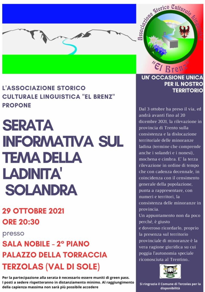 Gran fermento in questo caldo autunno … è tempo che le genti delle Valli del Noce si muovano insieme per avere il riconoscimento che meritano. L’Associazione “El Brenz”, iniziando con la serata del 29 ottobre a Terzolas, sta sensibilizzando la popolazione a livello linguistico e culturale per il censimento delle minoranze linguistiche della provincia Di Trento, un’occasione da non perdere.
