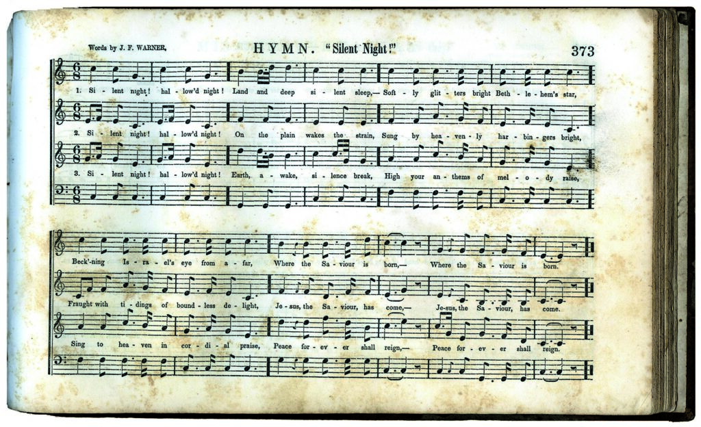 Die erste Übersetzung von „Stille Nacht“ ins „Amerikanische“ erfolgte spätestens 1849 und wurde im Liederbuch „The devotional harmonist“ (Seite 373) erstmals abgedruckt.