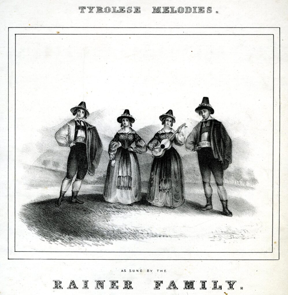 Die „Rainer Family“ 1839 in Amerika. Mitglieder waren Ludwig Rainer, Simon Holaus, Margarethe Sprenger und Helene Rainer.