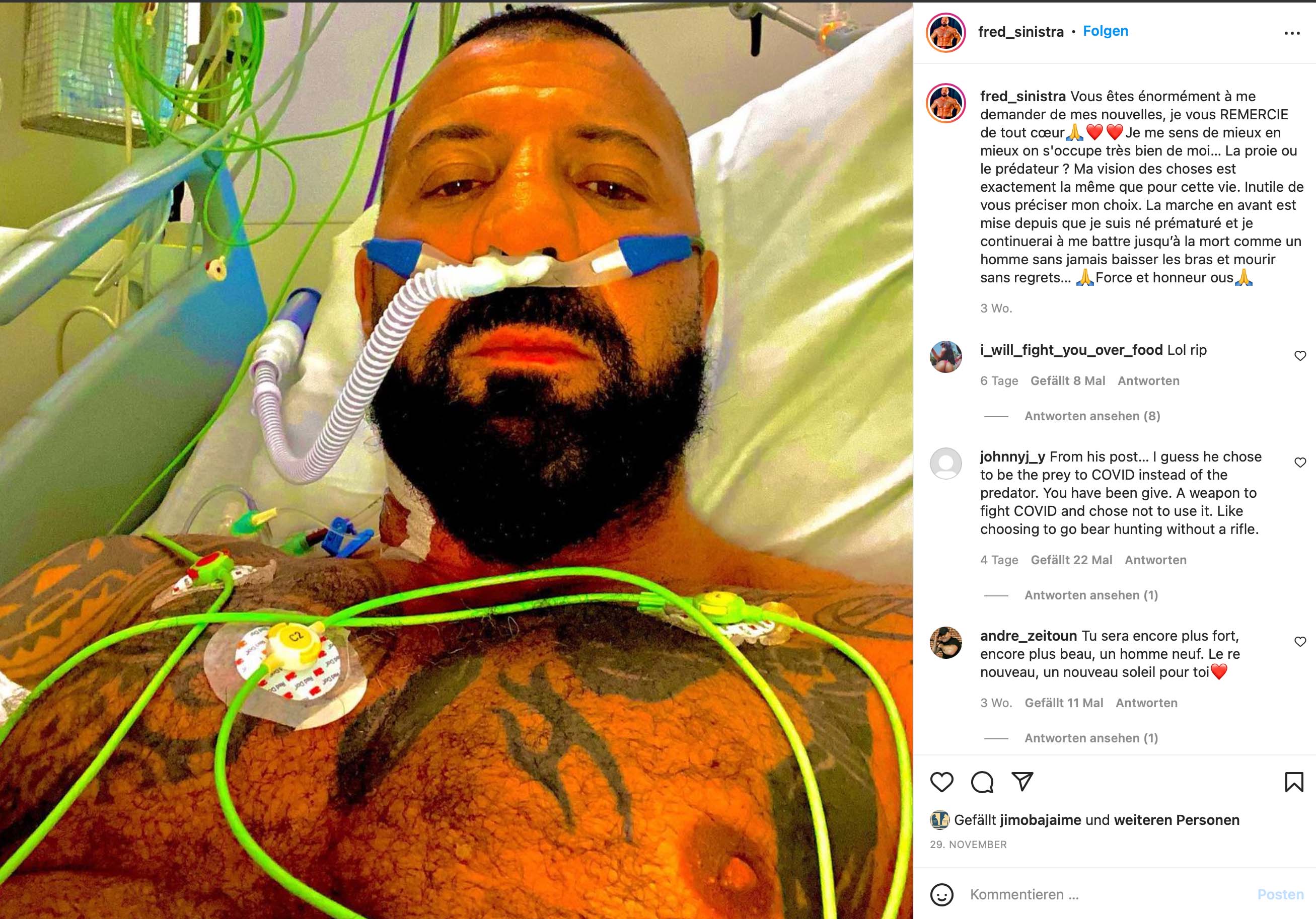 Der Kickboxer wurde im November in das Krankenhaus von Liege (Belgien) eingeliefert. In mehreren Posts wandte er sich vom Krankenbett aus an seine Fans und erklärte, dass das „kleine Virus“ ihn nicht stoppen könne.