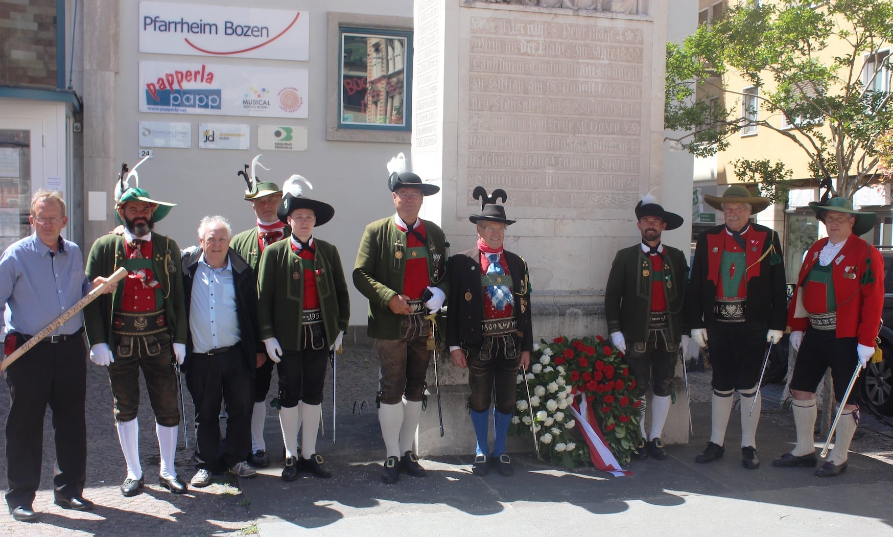 Mit einer Messe im Bozner Dom und einer Kranz-Niederlegung am Peter Mayr-Denkmal erinnerten der Südtiroler Heimatbund und Schützenabordnungen aus dem ganzen Land, die Kompanien Bozen und Gries sowie eine Schützenabordnung aus dem Fleimstal an den beim Messeumzug 1921 von den Faschisten schwer verletzten und dann verstorbenen Giovanni Battista Daprà (UT24 berichtete).
