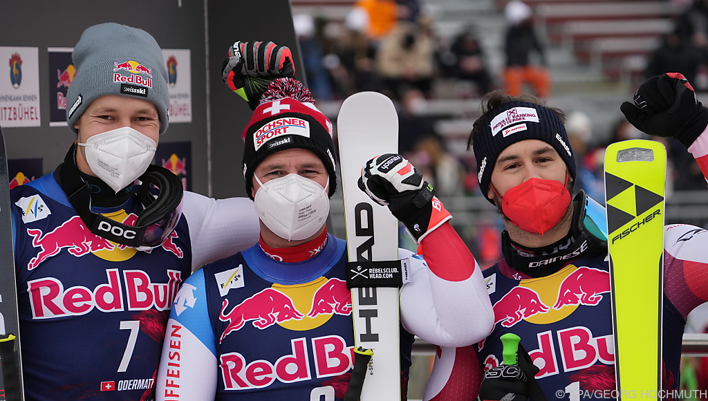 Odermatt übertrieb es bei seinem spielerisch-verwegenen Ritt, indem er ohne Driftschwung an der Hausbergkante nur mit Mühe im Kurs blieb. Feuz nahm dem überlegenen Gesamtweltcup-Führenden am letzten Teilstück die entscheidenden Hundertstel ab. „Klar will man in Kitzbühel zurückschlagen, wenn der Vinc in Wegen gewonnen hat. Mit Odermatt und mir hat das heute gut funktioniert“, sagte der seit kurzem zweifache Papa Feuz, der sich seinen ersten Saisonsieg für ein großes Rennen aufgehoben hatte. Ein Jahr nach seinem Streif-Doppel bleibt der 34-Jährige der Kugelblitz von Kitz. Öfter gewonnen haben die Traditions-Abfahrt nur sein Landsmann Didier Cuche (5) und Franz Klammer (4).