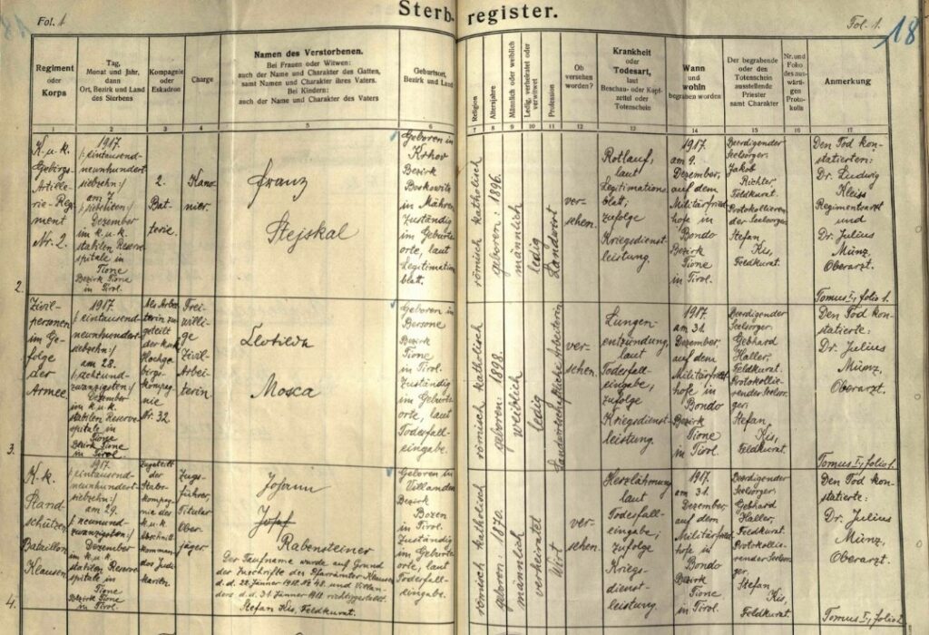 Il medesimo giorno nel Soldatenfriedhof viene tumulato anche Johann Rabensteiner di Villanders, un Oberjäger dello Standschützenbataillon Klausen, morto nello stesso ospedale per paralisi cardiaca, anche questa dovuta al „servizio di guerra“.
