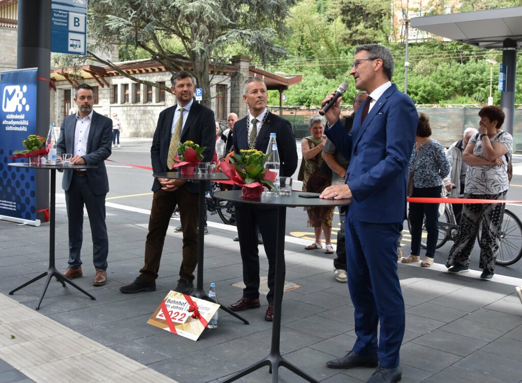 Für Brixens Bürgermeister Brunner geht mit der Inbetriebnahme des neuen Mobilitätszentrums ein lang gehegter Wunsch in Erfüllung: „Wir schlagen heute ein neues Kapitel in Sachen Mobilität in Brixen auf. Gleichzeitig freuen wir uns, künftig Gäste aus Nah und Fern am neugestalteten Bahnhofsvorplatz willkommen heißen zu dürfen.“ Brunner nahm aus den Händen von Walter Weiss, Präsident des Vereins Freunde der Eisenbahn, sowie von Siegfried Tutzer als Vertreter der Preisjury die Auszeichnung „Bahnhof des Jahres“ entgegen. Die Auszeichnung weist jährlich auf die Bedeutung der Bahnhöfe hin, um diese weiter aufzuwerten.