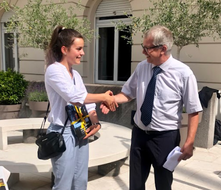 Darauf folgte auf der Terrasse der Schule die Prämierung. Die Geehrten durften sich als Geschenk ein Fachbuch aussuchen. Abgerundet wurde die Veranstaltung von einem kleinen Umtrunk auf der Terrasse des Schulgeländes, um den Anlass zu feiern.