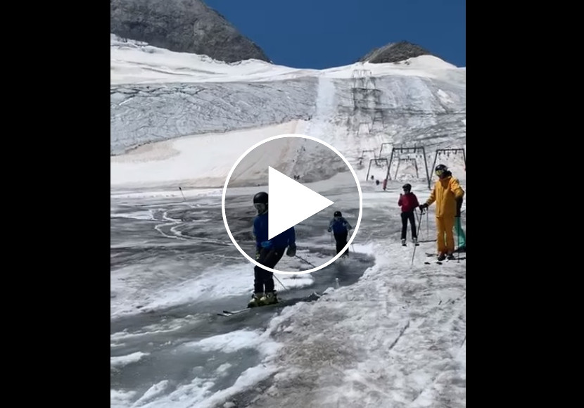 Gepostet wurde das Video auf Twitter mit dem Titel „Tiroler Gletscher oder neuer Katastrophenfilm?“ am Donnerstagvormittag. Wenige Stunden nach Veröffentlichung wurde es bereits 42.000 Mal angezeigt. In den Kommentaren postete ein User ein ähnliches Video, das ebenfalls am Hintertuxer Gletscher aufgenommen wurde – scheinbar „vor einigen Tagen“. In diesem Video sind Skifahrer talwärts unterwegs – in tiefen Rinnen, die weniger einer Spur sondern einer Wasserrutsche gleichen.