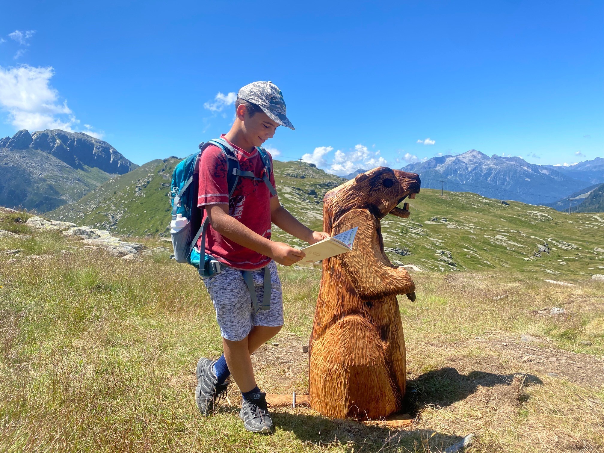Si tratta di una missione speciale che i bambini potranno compiere per tutta l’estate assieme a Carlotta la Marmotta, simpatica investigatrice alla ricerca della „pietra del tempo“, così preziosa per gli animali del posto e scomparsa misteriosamente. Una volta ritirato alla cassa (costo 4 euro) il Kit della giovane marmotta, contenente il libretto illustrato, con la storia e le istruzioni per la missione ed arrivati in quota, bisognerà intraprendere proprio il Sentiero delle Marmotte, un facile percorso ad anello di circa un chilometro e mezzo lungo il quale sono state posizionate sette sculture in legno alte circa un metro e mezzo.