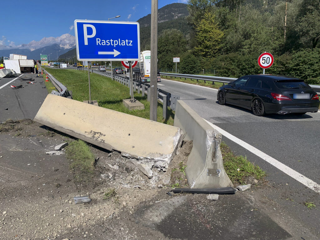 Gegen 11.00 Uhr lenkte ein 31-jähriger Österreicher einen Lkw-Zug auf der Inntalautobahn im Gemeindegebiet von Zirl in Richtung Westen. Auf Grund eines Sekundenschlafes des Lenkers geriet das Fahrzeug über den rechten Fahrstreifen hinaus und stieß gegen den Anpralldämpfer des Autobahnparkplatzes Inzing, teilt die Autobahnpolizeiinspektion Imst mit.