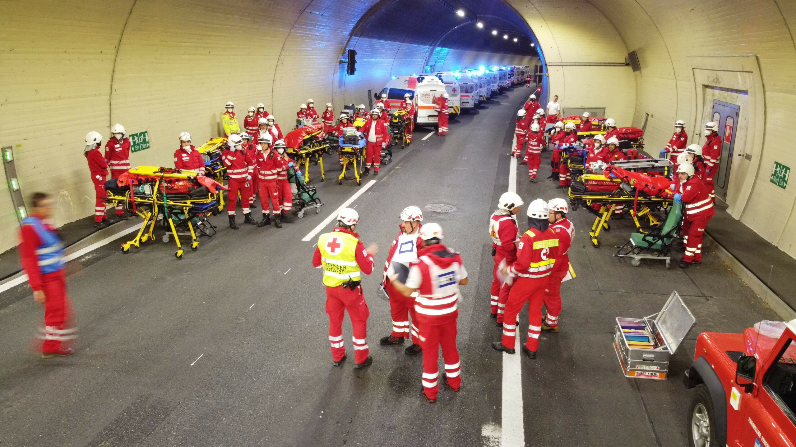 Ein folgenschwerer Verkehrsunfall mit einem vollbesetzten Kleinbus im Tunnel, eine Explosion bei Bauarbeiten im Bahnhofsbereich, ein Bühneneinsturz aufgrund eines Unwetters am Weiher oder ein Hangrutsch im Kieswerk, bei dem Menschen verschüttet wurden: „Das sind einige der acht Szenarien, die am Samstag am Programm standen“, erklärt Landesrettungskommandant Martin Dablander und ergänzt: „Besonders fordernd sind dabei die Nachtübungen, von denen es drei gab“. Beim Abschlussszenario am Sonntag war die Übungsannahme eine Explosion am Gelände der Donauchemie mit mehr als 60 zu versorgenden Personen. Diese werden von Statisten gemimt, die extra für die Szenarien geschminkt werden und realitätsnahe die Verletzten spielen.