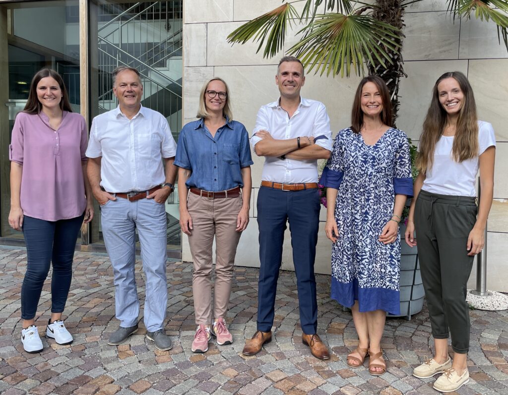 Die Redaktion; im Bild von links nach rechts: Verena Geier, Christian Schweigkofler, Katherina Klotz, Koordinator Georg Wenter, Eva-Maria Kröss, Ulrike Ladurner