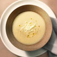 Preparare il brodo di carne di manzo e/o gallina. Farlo sgrassare per affioramento. Tostare le verdure in poco olio evo, unire gli odori e aggiungere l‘ Asiago a pezzetti e il brodo quanto basta. Frullare il tutto e passarlo in un colino a trama fitta. Scaldare e servire.