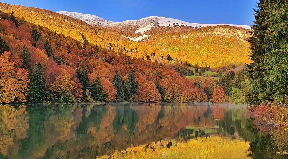 Riflessi d’autunno al Lago di Prà da Stua L’escursione ad anello inizia costeggiando il suggestivo Lago di Prà da Stua per ammirare i colori del bosco che si specchiano nelle sue limpide acque e prosegue poi affiancando l’alveo del torrente Aviana per poi entrare nella faggeta. Al termine della passeggiata, pranzo tipico presso la Baita del Trett.