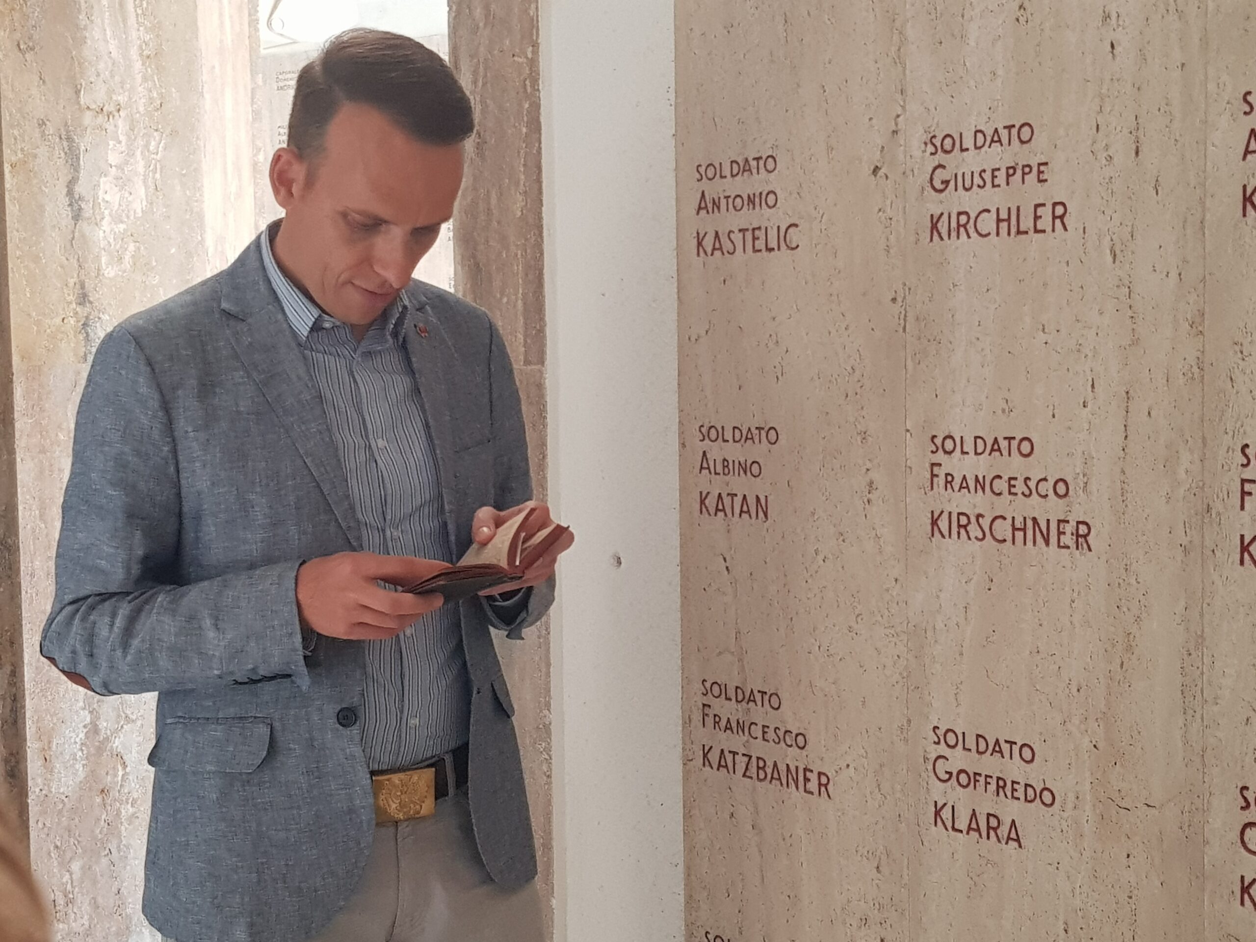 „Siamo stati accolti da un incaricato di Onorcaduti che ci ha accompagnato all’interno del mausoleo, lungo i corridoi. Dopo 106 anni qualcuno della famiglia ha finalmente potuto portare una candela alla tomba dello zio Franz, raccogliersi davanti alla sua lapide, recitare la preghiera contenuta nel Gebetsbuch, il libretto di orazioni che all’epoca era stato consegnato a tutte le famiglie dei soldati caduti e che abbiamo conservato per generazioni. Ma questo luogo – conclude Sven – mi ha fatto venire i brividi, e non solo per il freddo del corridoio o delle pareti rivestite di marmo, ma per l’insieme di queste e di altre cose“