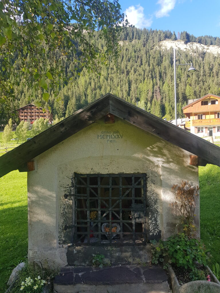 Il nostro cammino oggi ci ha portato fra le antiche case di Gries de Cianacei. Nel piccolo borgo fassano. fra antiche case dai legni anneriti dal tempo e dalla vita, si incontrano segni di una fede che, come quei legni, ha sfidato i secoli e le imtemperie.Â