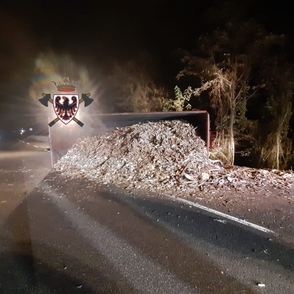 Il semirimorchio ed il materiale hanno completamente invaso la carreggiata: per rimuovere il mezzo e per ripristinare la viabilità sono intervenuti i Vigili del Fuoco Volontari di Civezzano, con il Servizio Strade della Provincia e le forze dell’ordine, necessario l’utilizzo dell’autogru.