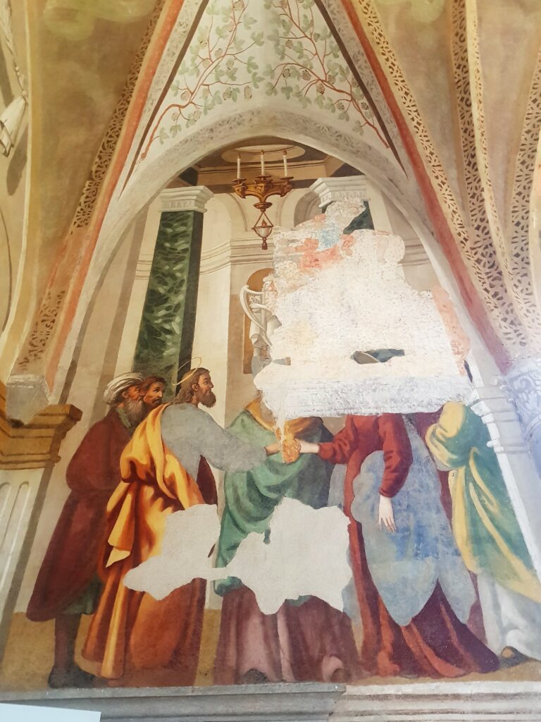 Oggi siamo in Val di Sole, a Caldes. L’antico castello eretto dai Cagnòe che poi appartenne per secoli alla famiglia Thun, è stato recentemente acquisito e restaurato dalla Provincia di Trento ed è una meravigliosa sede museale. Anche la cappella funge da sala espositiva, ma rivela ancora le tracce di un passato non del tutto cancellato.