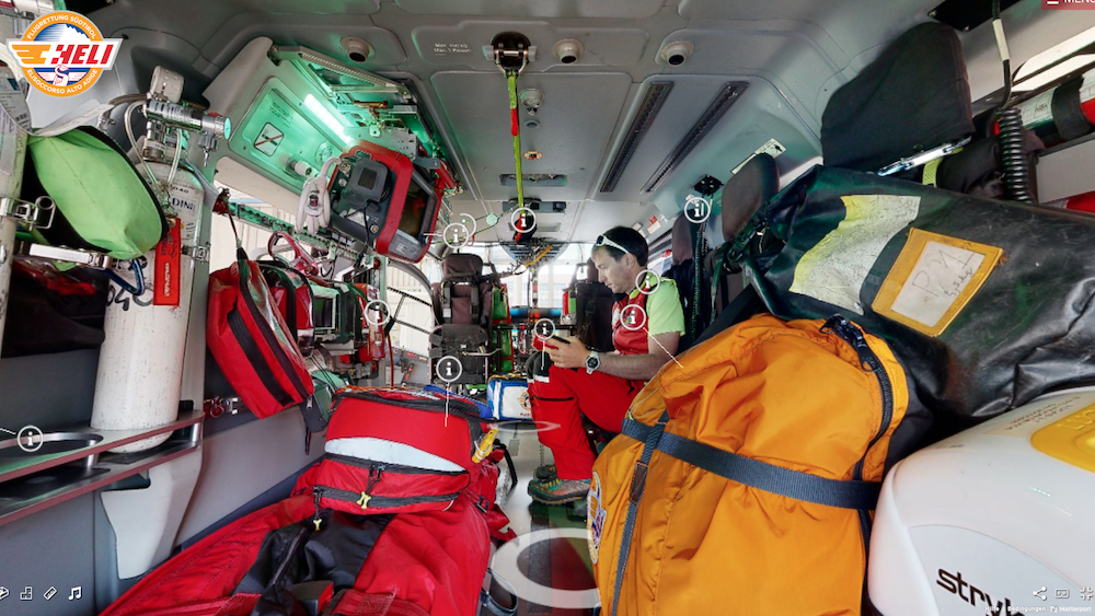 Um die Südtiroler Flugrettung zukünftig für noch mehr Menschen „zugänglich“ zu machen, hat der Verein HELI kürzlich einen virtuellen Rundgang für die Basis des Pelikan 1 in Bozen realisiert. Gemeinsam mit dem Eppaner Unternehmen Visim (visim.eu) wurde dabei der gesamte Hangar mit einer neuartigen 3D-Aufnahme-Technik gescannt und zu einer digitalen Tour zusammengefügt. Dabei kann der Besucher sogar in das Cockpit sowie dem Patientenraum des Pelikan 1 steigen und den Flugrettern über die Schultern schauen. Sogenannte interaktive Infopunkte geben dabei Aufschluss über die verschiedenen Instrumente und technischen Ausrüstungen an Bord. Gleichzeitig ist für die Besucher auch eine virtuelle Besichtigung des Intensivtransportwagens (ITW) des Weißen Kreuzes möglich.