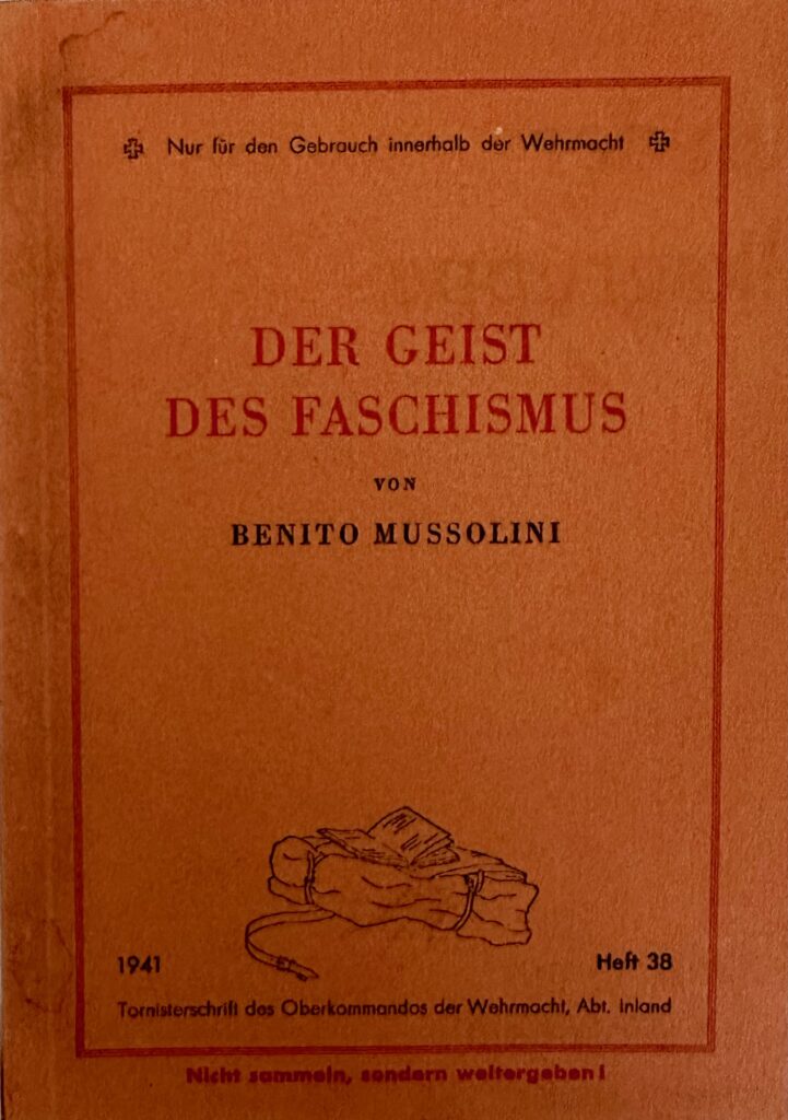 „Der faschistische „Duce“ Benito Mussolini hat in einer programmatischen Schrift seine Doktrin von der Einheitsnation im Einheitsstaat verkündet: „Die Nation erzeugt nicht den Staat […]. Vielmehr wird die Nation vom Staate geschaffen, der dem Volke, das sich seiner eigenen sittlichen Einheit bewusst ist, einen Willen und daher seine eigentliche Existenz verleiht.“ In diesem Konzept war das Weiterbestehen ethnischer Minderheiten nicht vorgesehen. Sie hatten unter Aufgabe ihrer eigenen Identität sprachlich und kulturell in der verordneten Einheitsnation aufzugehen. Dies forderte der faschistische Staat auch von den Südtirolern.