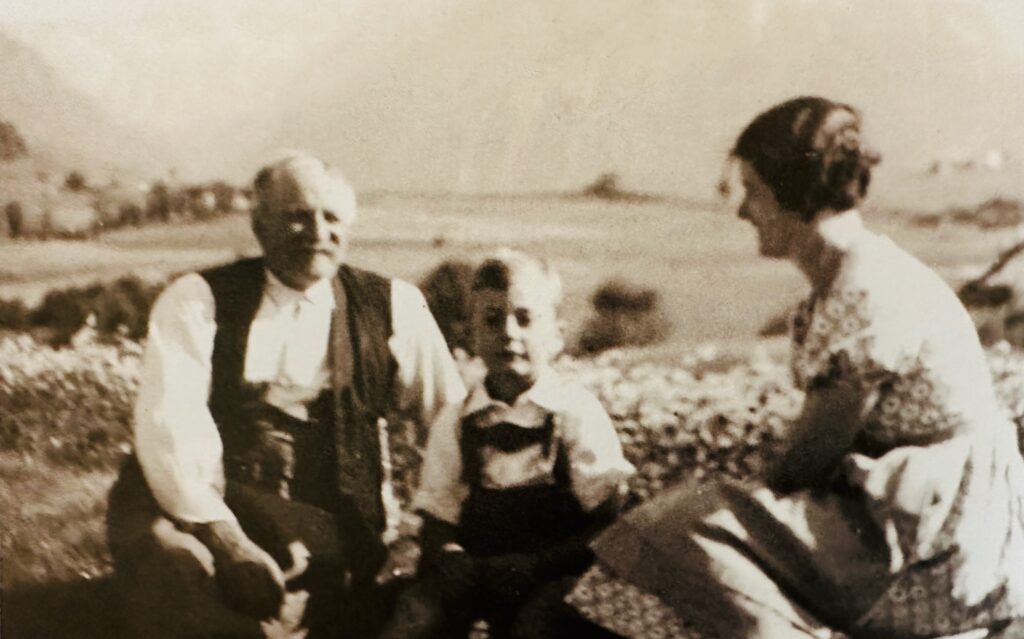 Volkslieder zu singen galt als gefährlich, man hätte doch daraus auf heimliche Zusammenkünfte schließen können, bei denen wir vielleicht gemeinsame deutsche Lieder gesungen hätten. Liedersingen war höchstens dann und wann auf der Alm möglich, wohin mich meine Eltern ab dem sechsten Lebensjahr jeweils für zwei Monate während der Sommerferien brachten. Ich wohnte dort bei den alten Eltern der Familie Profanter vom Plojerhof aus Kastelruth, auf ihrer Schwaige auf der Seiseralm. Die „Alten“ – schon im Ausgedinge – betreuten die Hütte den Sommer über und verbrachten dort eben ihre Zeit. Ich fühlte mich wohl behütet und beschützt. […] Auf der Alm wurden auch Volkslieder gesungen und mit Zither und Gitarre begleitet. Aber man war nicht einmal im Tschapit, zu Füßen des Schlerns, ganz sicher, denn gelegentliche „Besuche“ durch Carabinieri, die aus dem tiefer gelegenen Bad Ratzes heraufkamen, brachten auch da eine gewisse Unruhe. Alle spürten den Druck des Faschismus, der uns unsere Identität, Sprache und Bräuche, unsere angestammte Kultur mit Gewalt nehmen wollte. […]